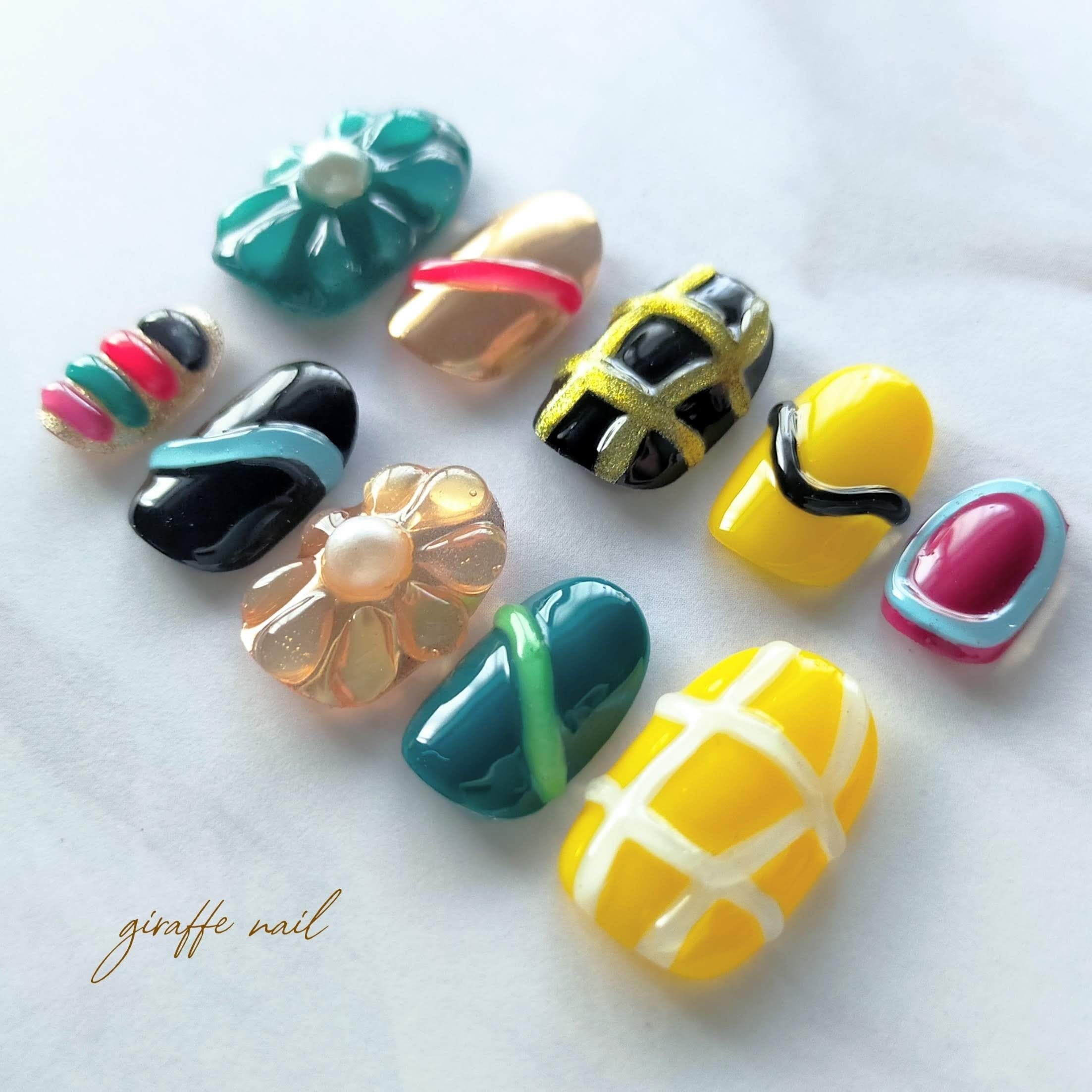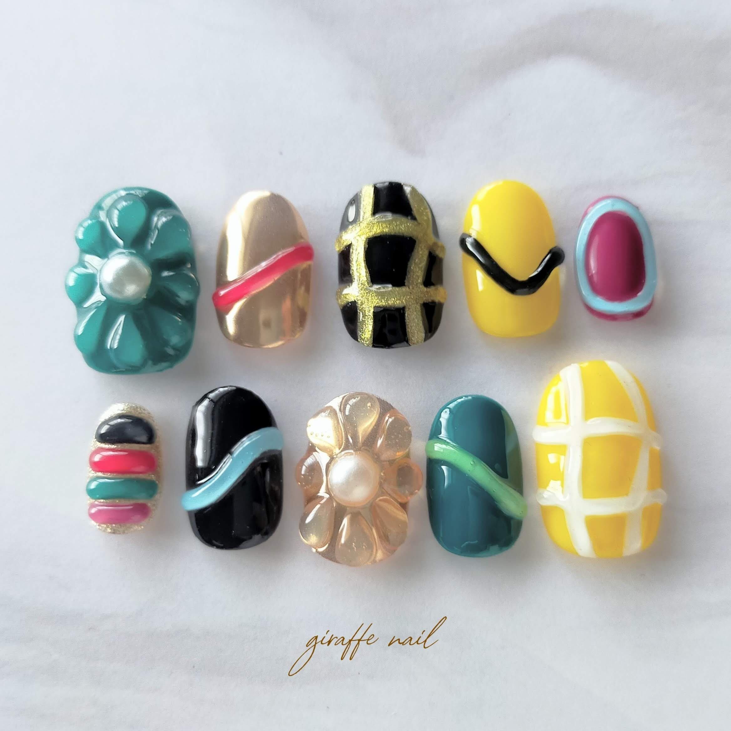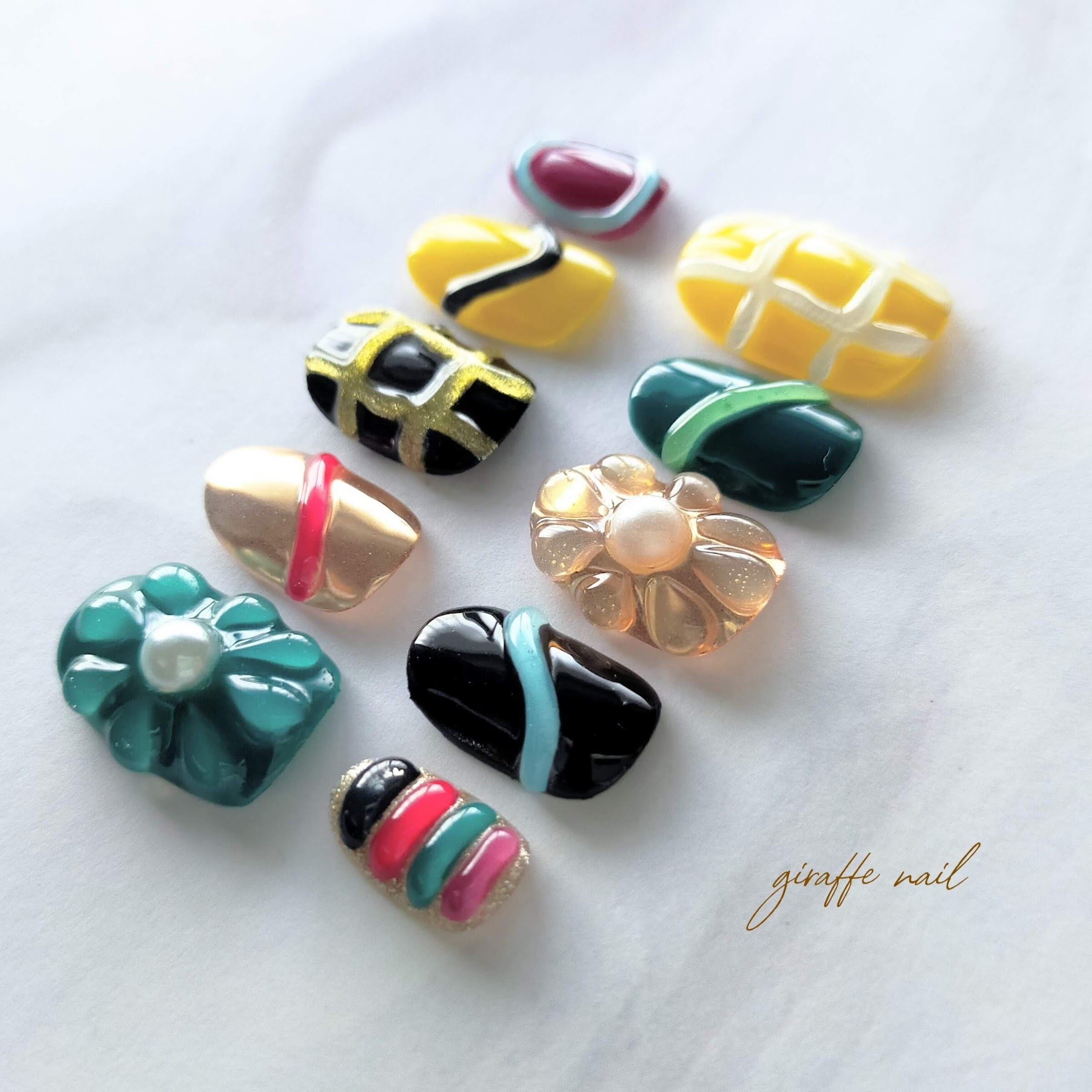 88 ネイルチップ ぷっくりネイル 立体ネイル カラフルネイル 個性派ネイル お花ネイル