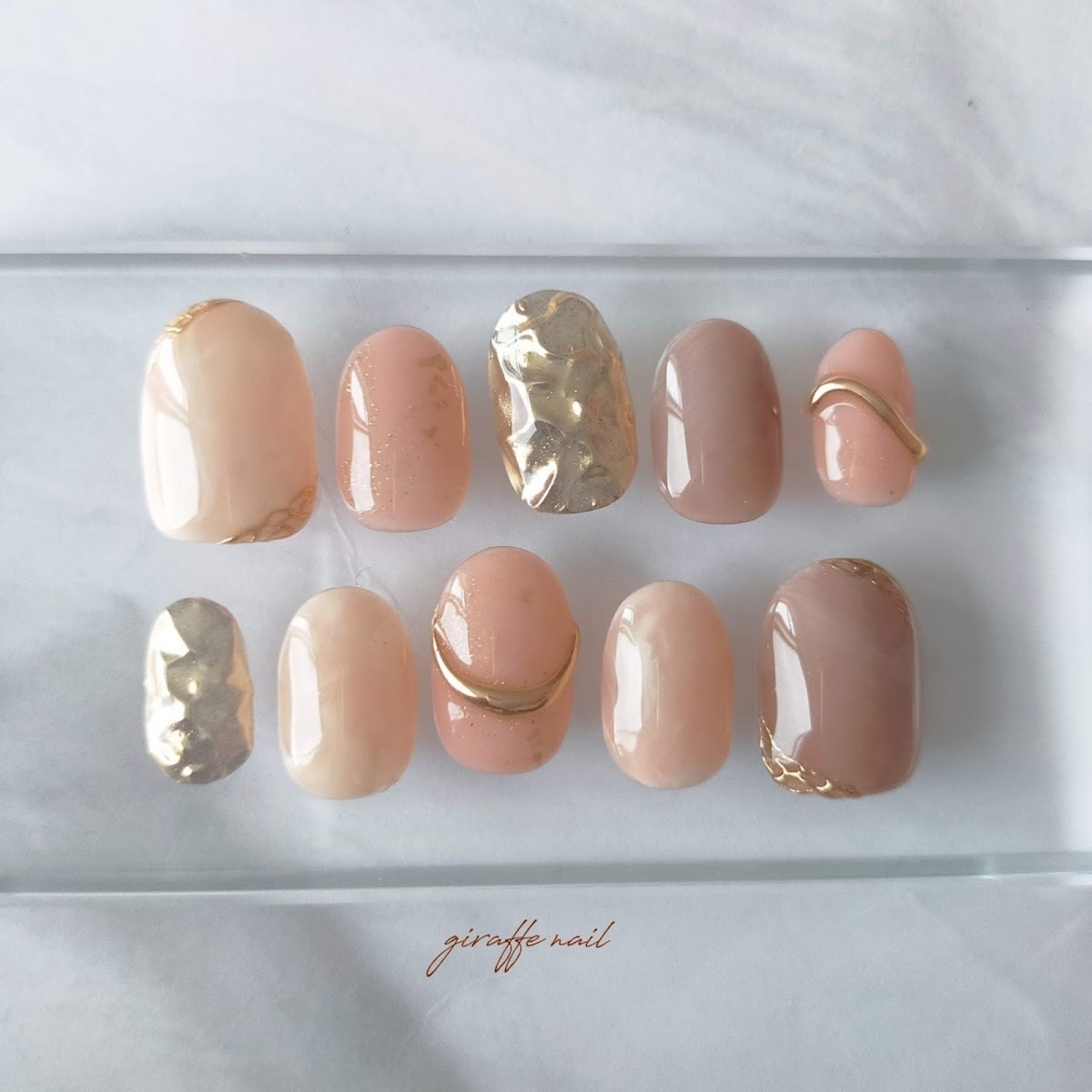 人気のカフェオレネイルをいちごオレカラーで仕上げたデザインです。